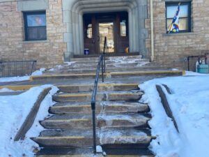 This is the current entrance to the Nancy Kay Holmes Branch. Unless you are very spry and able-bodied, it is forbidding which is why we need your help to install a new entrance on the the south side of the building…with no stairs.