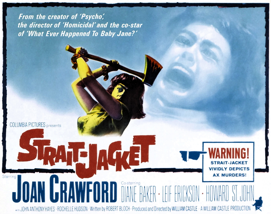 William Castle Film Series Continues Wednesday, October 14th With “Strait-Jacket” Starring Joan Crawford